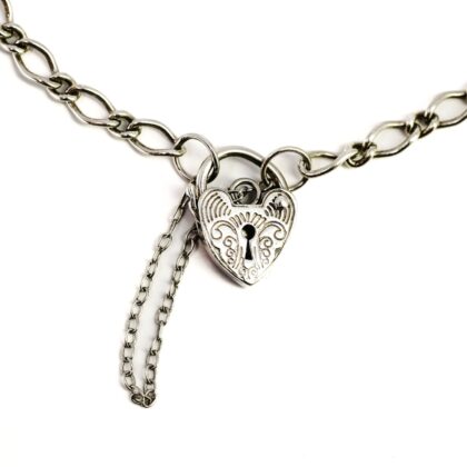 Sterling Silver Figaro Link Bracelet – Heart Shaped Clasp #68210