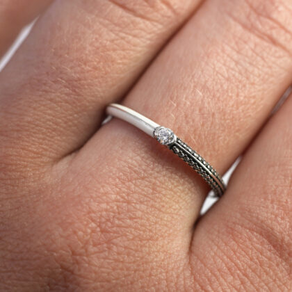 Pandora Sterling Silver CZ Pave & White Enamel Dual Ring Size Q #67351