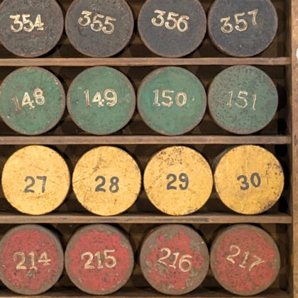 Vintage Railway / Industrial Wage Paycheck Tins (x42) – Wood Case/Tray #67922