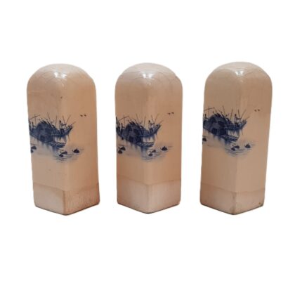 Set of 3 Chinese Porcelain Seals – Hand-Painted Boat Scene – Unmarked – 5cm #47615