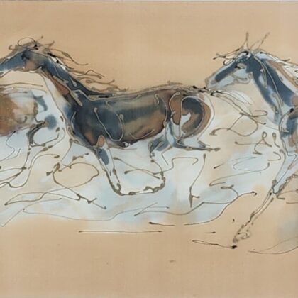 MD 89 Horses Painting Signed Mixed Media On Canvas On Board Framed Under Glass 800 x 240mm #69731