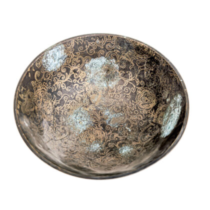 Chinese Engraved Bronze Bowl – Floral Scroll Motif with Calligraphic Mark #66993
