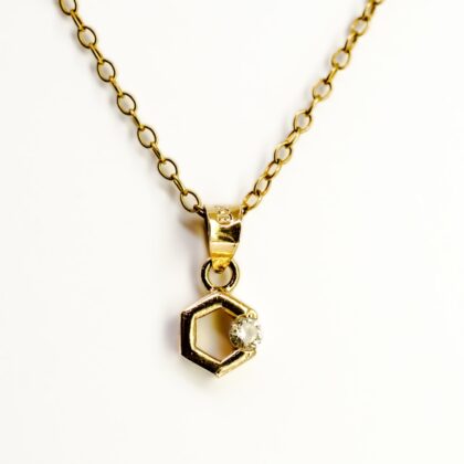 18ct Yellow Gold Hexagon Pendant with CZ – 5.5mm Wide #68616-1