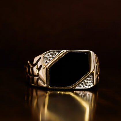 9ct Yellow Gold Onyx & Diamond Men’s Signet Ring Size S 1/2 #68845