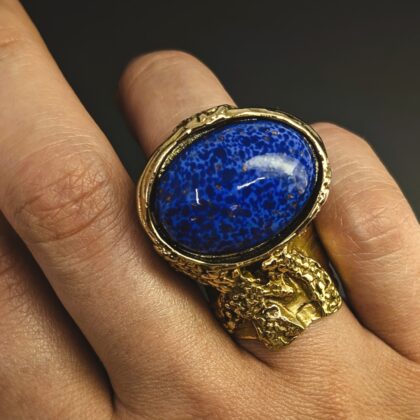 YSL Chunky Cabochon Statement Ring – Yves Saint Laurent Arty Style – Navy Lapis – Size 7 (AU O) #68272
