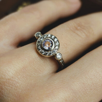 Sterling Silver White & Purple CZ Halo Ring #68197