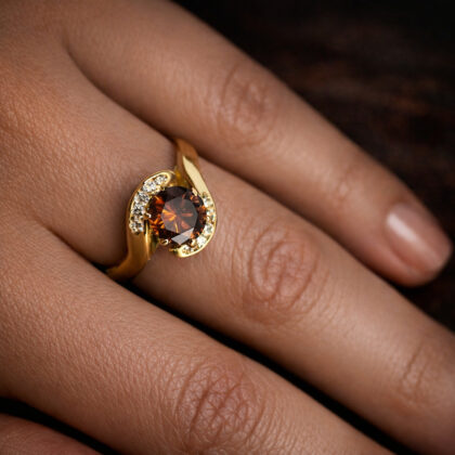 18ct 1ct Cognac Diamond Yellow Gold Ring Size M Valued $8550 #68584