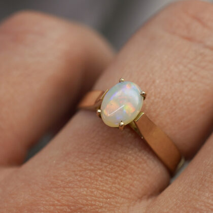 9ct Yellow Gold Oval Natural Opal Solitaire Ring – Size M #67641