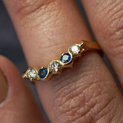 Curved 18ct Yellow Gold Sapphire & Diamond Ring Band – Size J½ #67651