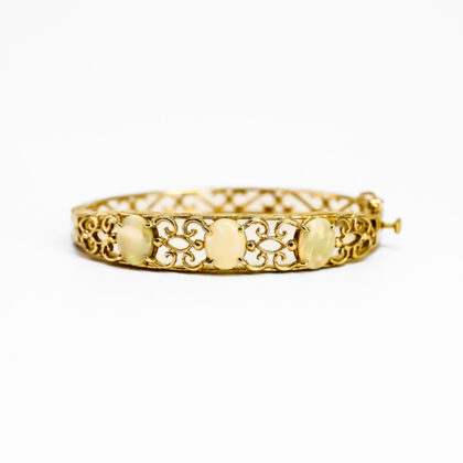 14ct Yellow Gold Opal Filigree Hinged Oval Bangle #69270