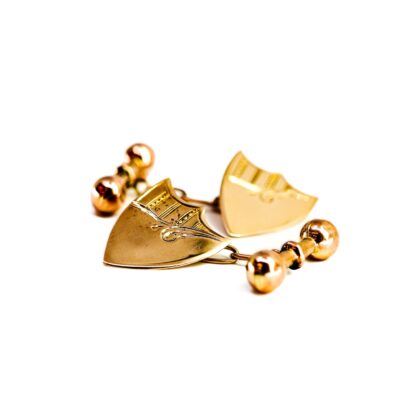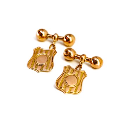 Vintage 9ct Yellow Gold Saunders Shield Cufflinks #69964