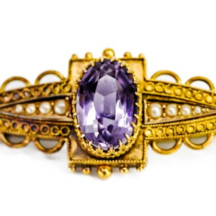18ct Yellow Gold Amethyst and seed pearl Brooch #69409