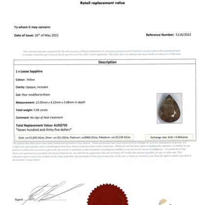 Natural Yellow Sapphire 5.09ct Pear Cut Loose Stone #59074-6