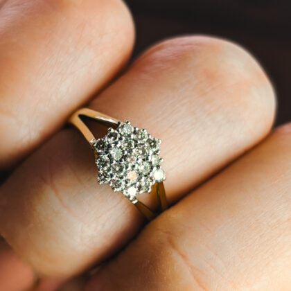 Diamond Flower Cluster Ring – 9ct Yellow Gold – Size R #66235