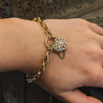 Oval Belcher Bracelet with Diamond Heart Padlock – 9ct Yellow Gold – 18.5cm #68393