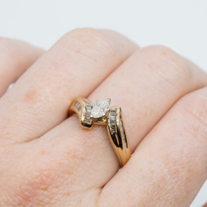 14ct Gold 0.25ct Marquise Diamond Ring with Baguette Shoulders – Size M #60494