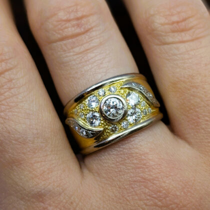 18ct Gold 1.17ct Handmade Wide Diamond Band – Ring Size R 1/2 Val $10650 #68208