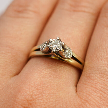 Vintage 18ct Yellow Gold Round Diamond Ring – Size i #4222