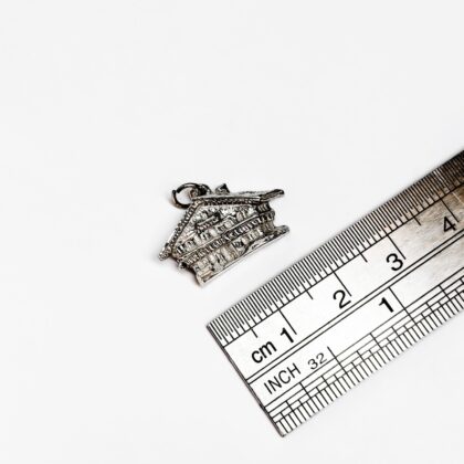 Vintage Solid Silver Log Cabin Travel Charm 22mm #62246