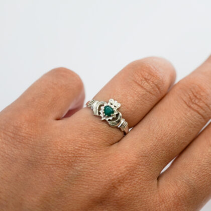 Vintage Sterling Silver Green Stone Claddagh Ring Size M #9635-34