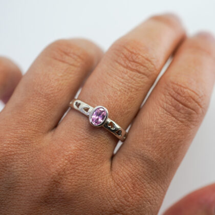 Vintage Sterling Silver Pink Stone Heart Ring Size Q #9635-46