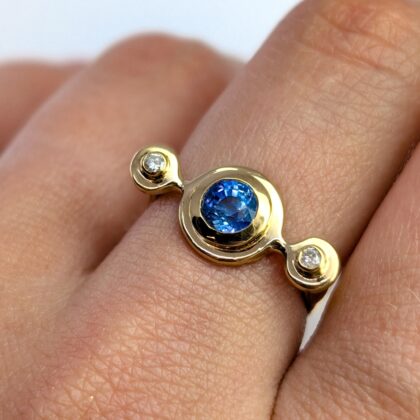 18ct Yellow Gold Sapphire & Diamond Ring – Size M #66411