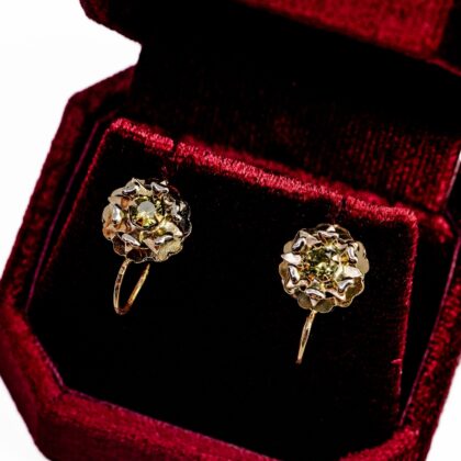 Vintage 18ct Sapphire Flower Earrings – Yellow Gold #67161