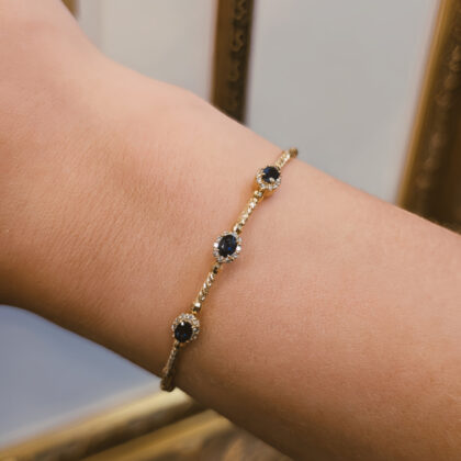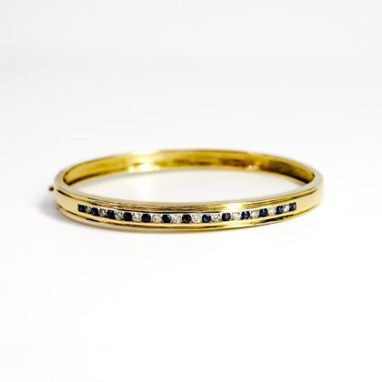 18ct Yellow Gold Sapphire and Diamond Oval Hinge Bangle #68882