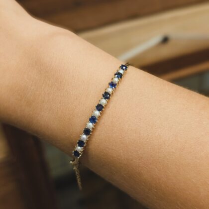 Rare Vintage 14ct Gold Sapphire Pearls & Diamond Necklace – Timeless Elegance #52411