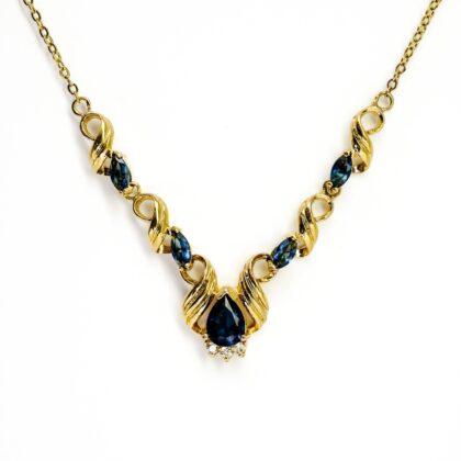 Gold Plated Blue Stone Costume Necklace 45 to 48cm #69458