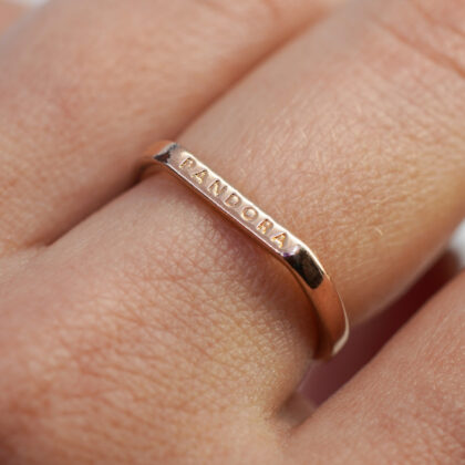 Pandora Rose Gold Plated Logo Bar Stack Ring Size 54 / M1/2 #67341