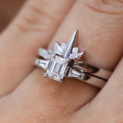 Platinum Rectangular Natural Emerald & Diamond Ring Size L #1074-3