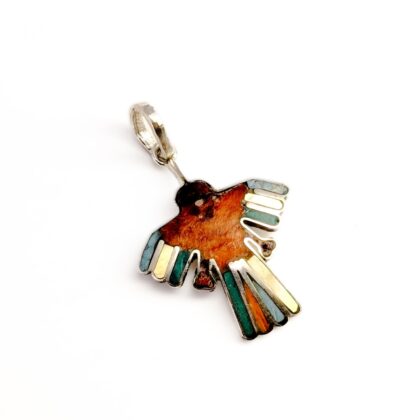 Vintage 950 Silver Enamelled & Inlaid Bird Pendant – 3.0g – 23mm Wide#68649