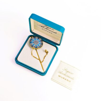 Seguso Archimede Murano Glass Pin / Badge Sterling Silver 24ct Gold Plated #69770
