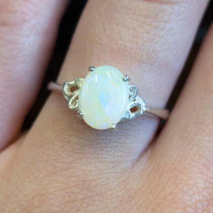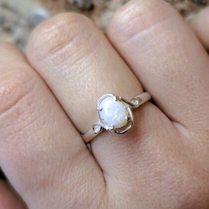 Sterling Silver Solid Opal – Milky White – Size P – New Old Stock #68053