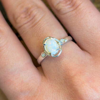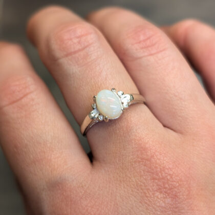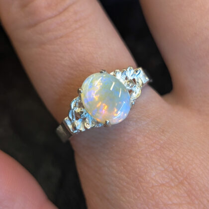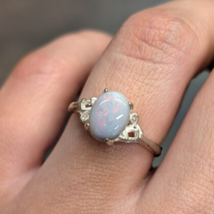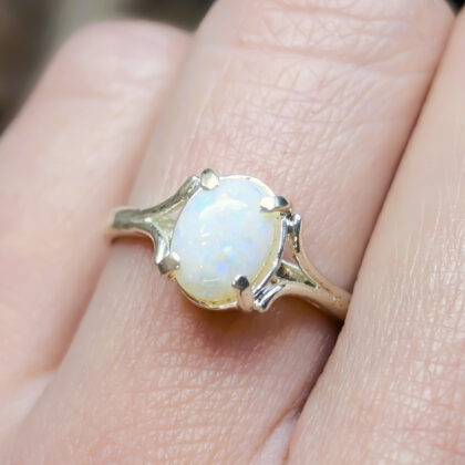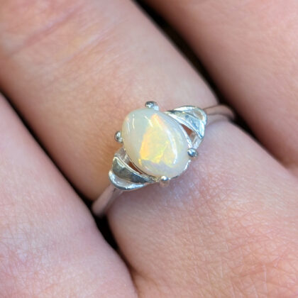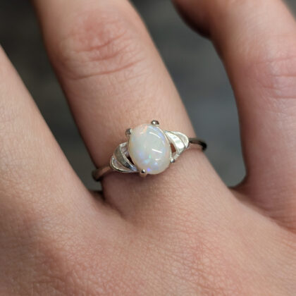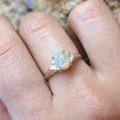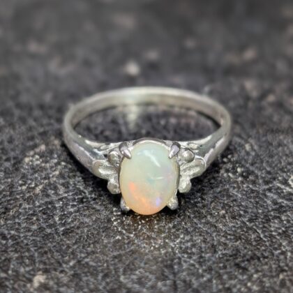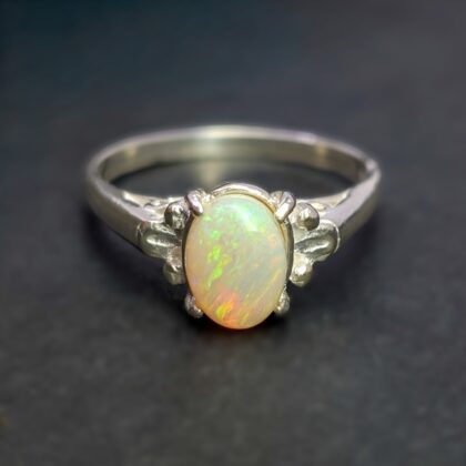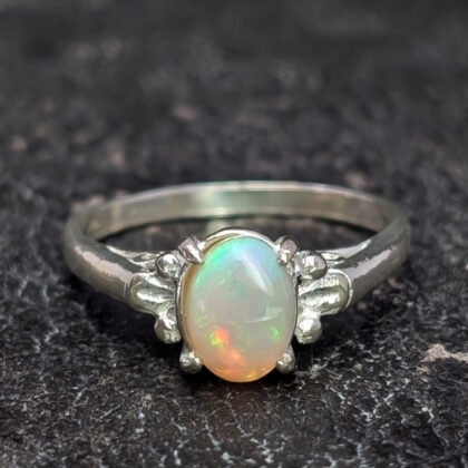 Sterling Silver Solid Oval Cabochon Opal Ring – Size Q #68057