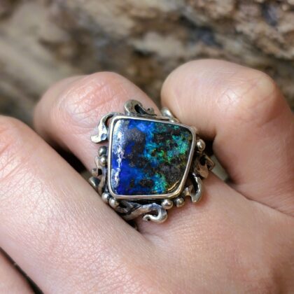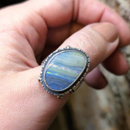 Sterling Silver Solid Opal Sculptural Statement Ring – Size Q #68048