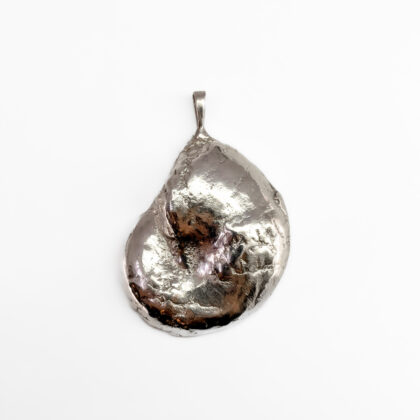 Sterling Silver Ammonite Shell Fossil Pendant – 28mm Wide #68072