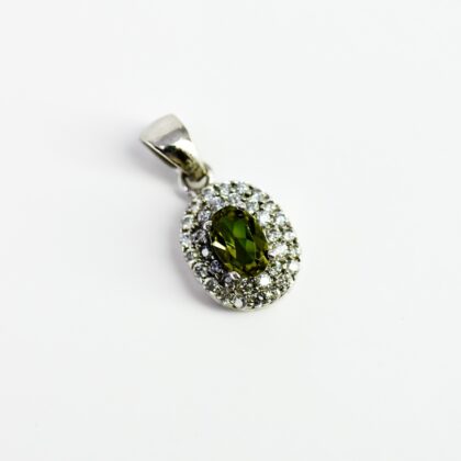 Sterling Silver Green & White CZ Oval Pendant 11x9mm #63120