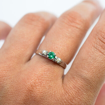 Sterling Silver Green & White CZ Trilogy Ring Size O #9635-39