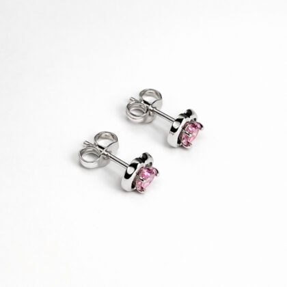 Sterling Silver Pink Stone Heart Stud Earrings 10mm #66709