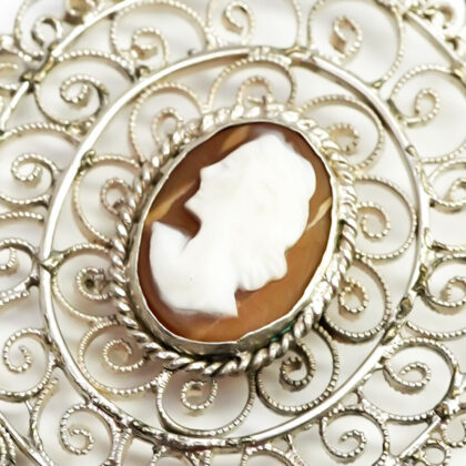 Vintage Large Sterling Silver Filigree Cameo Pendant #66680