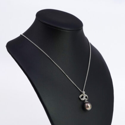Tahitian Pearl & Diamond Drop Pendant 14ct White Gold Val $2550 #65379