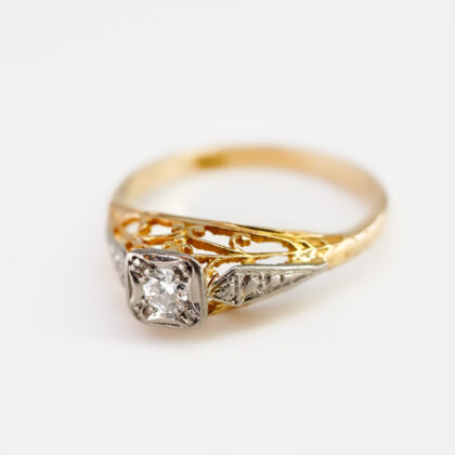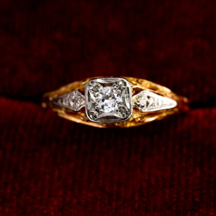 Vintage 18ct Yellow Gold Diamond Ring Size J – Star Setting #68270