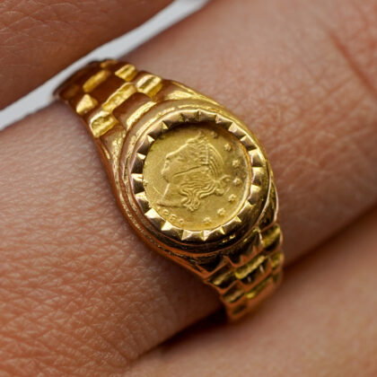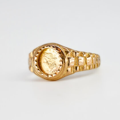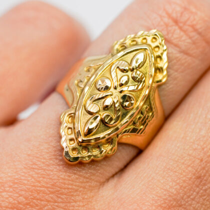 9ct Yellow Gold Serbian Kruna Ring with Valuation – 10.7g – Size W½ – 18mm Top #68638