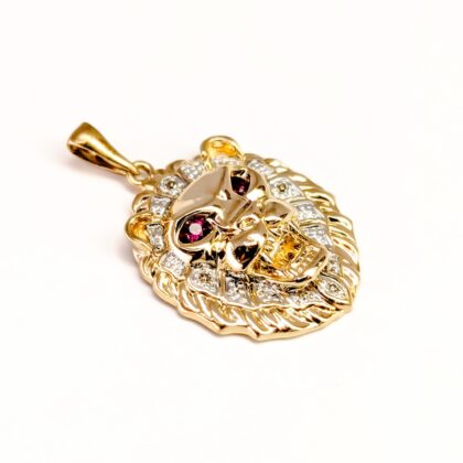 9ct Yellow Gold Lion Head Pendant – Ruby & Diamond #68379