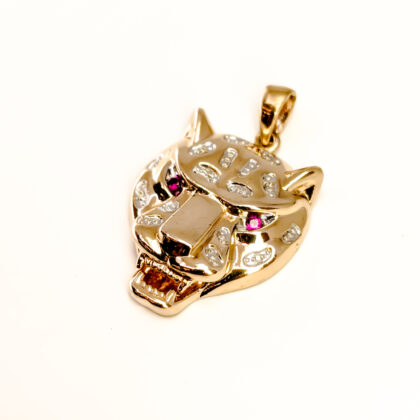 9ct Yellow Gold Panther Head Pendant – Ruby & Diamond #68380