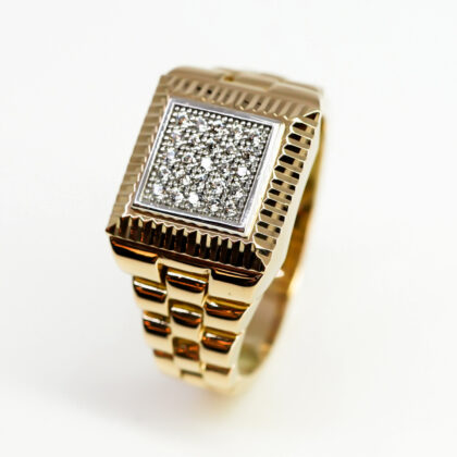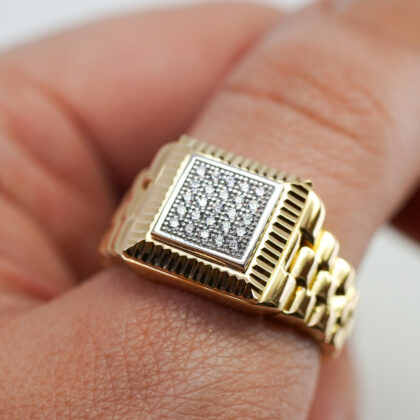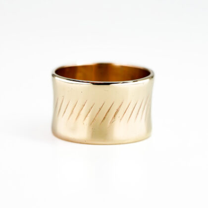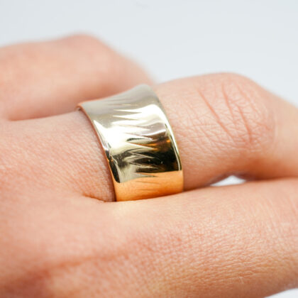 9ct Yellow Gold Textured Geometric Band – Ring Size L½ – USA #68164