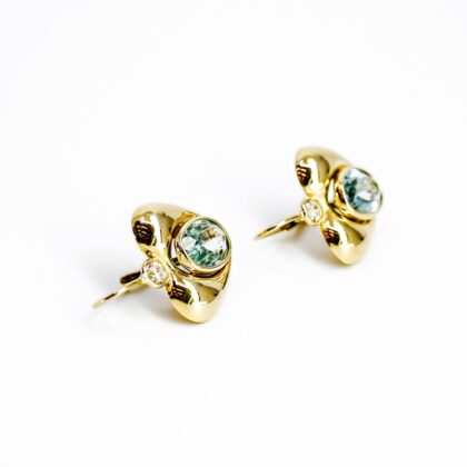 18ct Yellow Gold Blue Topaz & CZ Heart Earrings #68888
