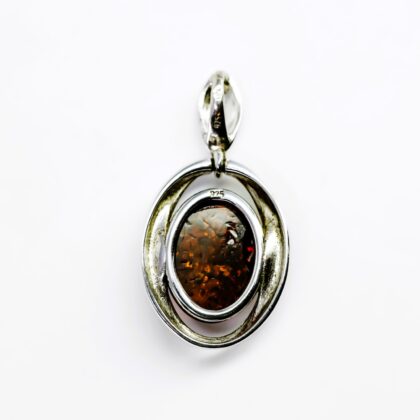 Sterling Silver Oval Amber Simulant Pendant #68150
